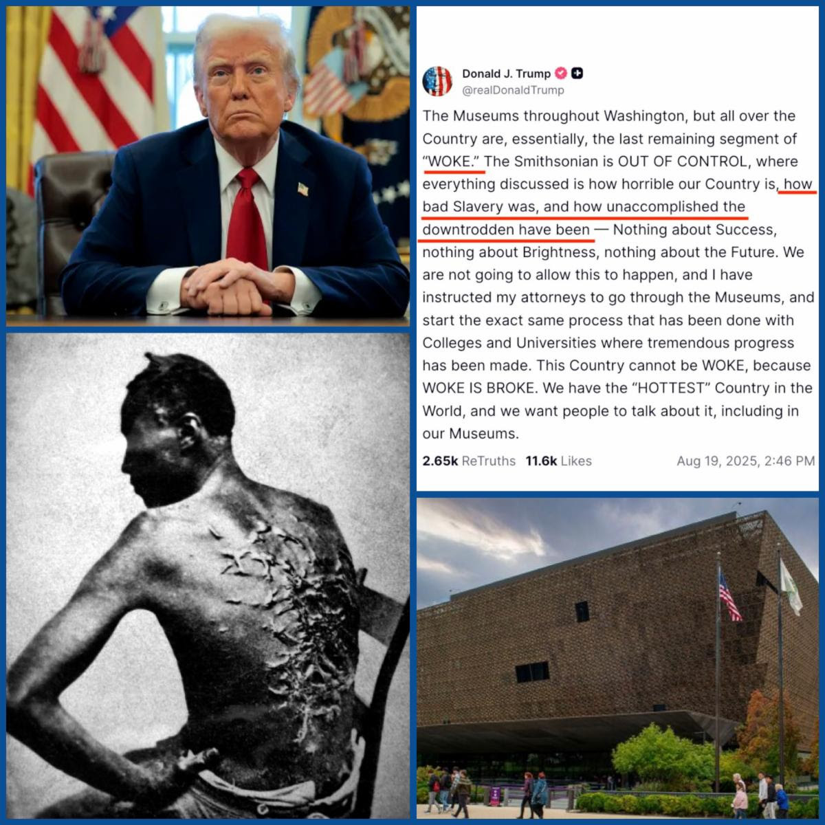 The fight against Black America continues in museums and education. We see erasure through the banning of books, exhibitions, admissions, and program agendas. Our culture is being labeled as “inappropriate,” and no specific ideology matches Trump’s thinking. Be clear, regardless of your generation, zip code, or station in life, Trump has brought racism back into the American way by intimidating and threatening war to push the “insurrection act” so that an election cannot be held, which could mean the cancellation of the election.