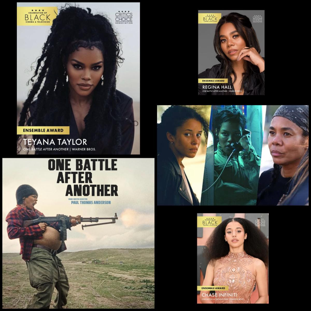 The cast of the action-comedy One Battle After Another—Regina Hall, Teyana Taylor, and Chase Infiniti—will receive the Ensemble Award.